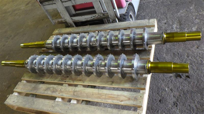 各種搬送設備等に使用されるスクリューシャフトの製作事例です。軸部の精密な機械加工に加え、羽根部分の溶接・仕上げまで一貫して対応いたしました。お客様の図面・仕様に基づき、求められる精度と品質を実現しております。
