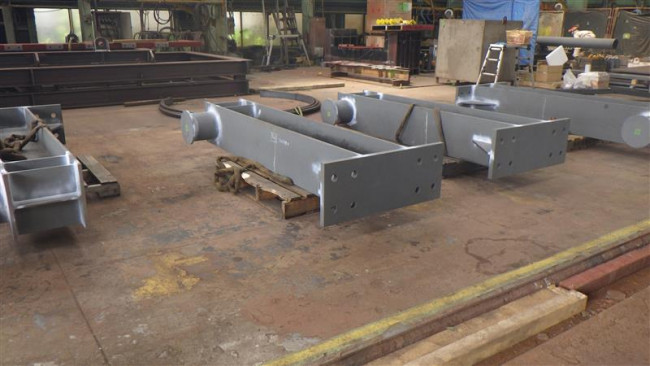 産業機械向けの大型構造物の製缶加工事例です。厚板の切断・溶接・組立を行い、据付先の仕様に合わせた開口加工や補強構造を施しております。大型・重量物にも対応可能な設備と技術力を備えております。